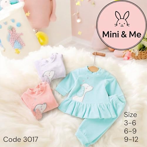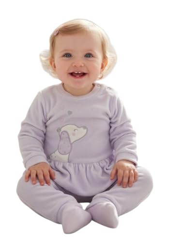 Generic - طقم بيجامة للبنات الصغيرات، ارجواني، بلوزة باكمام طويلة مع زخرفة جرو، بنطلون بأقدام 6-9 اشهر