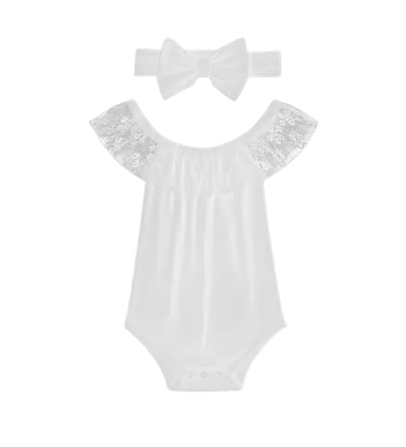 Meza - طقم ملابس للبنات البيبي مكون من بودي مع دانتيل وربطة رأس، فستان جمبسوت للأطفال من ميزة