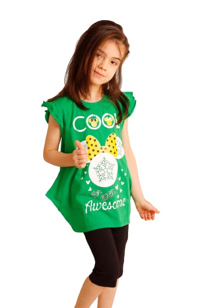 Generic - طقم ترنج بناتي اطفال صيفي قطن - لون أخضر