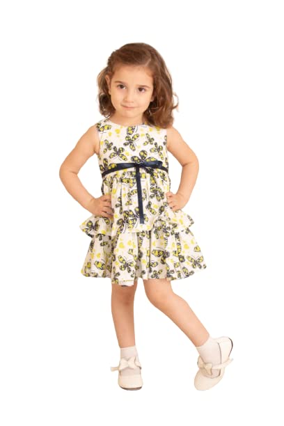 Generic - فستان بناتي أطفال صيفي - فستان للبنات بدون أكمام - من عمر سنتين الى 8 سنوات - لون أبيض في أصفر