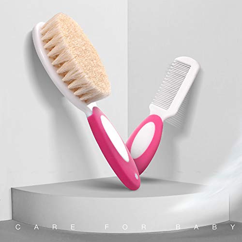 MR LION - فرشاة شعر للاطفال حديثي الولادة والاطفال الصغار | شعيرات ماعز ناعمة طبيعية | مثالية لقبعة المهد | هدية مثالية لحفلات استقبال المولود (احمر وردي)