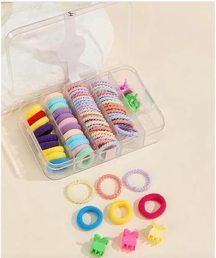 - علبة أساتك شعر صغيرة للأطفال تضم مجموعة من توك الشعر الصغيرة المرنة المصممة خصيصًا لشعر الأطفال. تأتي في مجموعة متنوعة من الألوان الزاهية والمرحة، مما يجعلها إكسسوارًا جذابًا يحب أن يرتديه الأطفال.