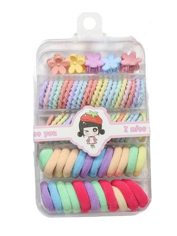 Generic - أساتك شعر مطاطية ملونة من القطن للشعر الخفيف والسميك لتسريحة ذيل الحصان للأطفال والبنات، أكسسوارات شعر بأستيكة ومشابك مخلبية صغيرة (متعددة الألوان، مجموعة من 75 قطعة) - مع علبة تخزين