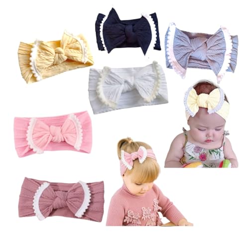 Generic - عصابة رأس للأطفال مع فيونكة كبيرة وحواف بومبوم، (6 الوان مختلف, مقاس موحد للاطفال)