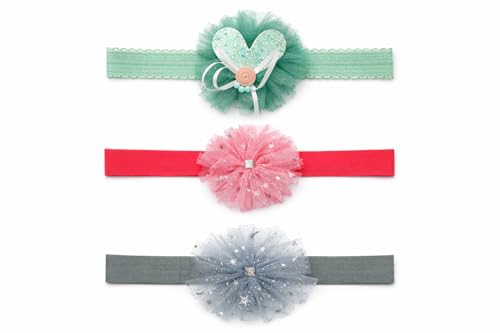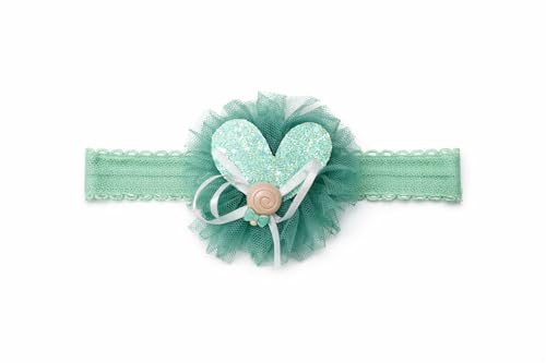 Generic - مجموعة عصابات رأس للاطفال مكونة من قطعتين بلون اخضر مينت وزهري ورمادي واكثر من ذلك بتصميم زهرة من التول مع قلب لامع واشرطة مرنة