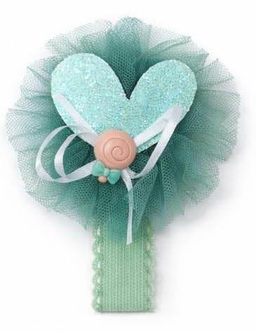 - تصميم ساحر: يتميز بزخارف زهور من التول الرقيق مع لمسات لامعة لامعة، بما في ذلك تفاصيل قلب مزخرفة على شريط الرأس الأخضر الفاتح لإضفاء لمسة نهائية رائعة