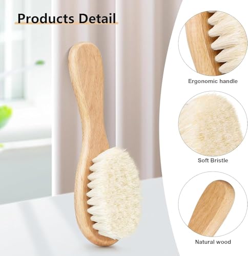 - 【ناعمة وآمنة】فرشاة شعر حديثي الولادة مصنوعة من خشب عالي الجودة مع حواف منحنية ناعمة وشعيرات ماعز ناعمة حريرية عالية الجودة، مما يجعل فرشاة شعر الأطفال الخاصة بنا أكثر أمانًا لك ولطفلك.