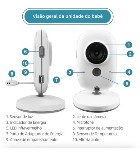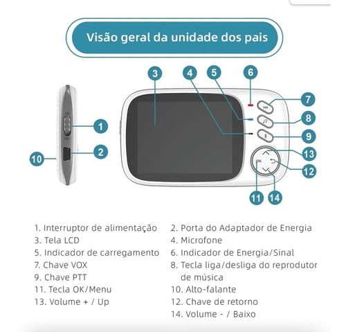 ILOOK - كاميرا مراقبة الطفل بشاشة 3.2 انش، رؤية ليلية بالاشعة تحت الحمراء، صوت ثنائي الاتجاه، كشف صوت VOX، مراقبة درجة الحرارة، مراقبة التهويدات في البرازيل PT/BR