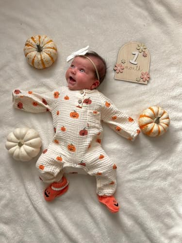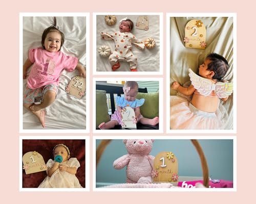 HONOCOOLS - بطاقات مميزة شهرية للأطفال - بطاقات خشبية شهرية - دعائم تصوير لحديثي الولادة لتوثيق نمو طفلك - لافتة إعلان الطفل (زهرة ايه ايه)