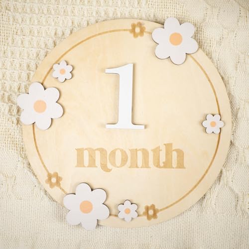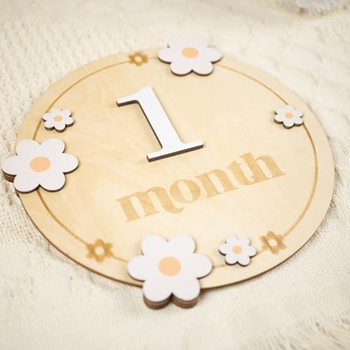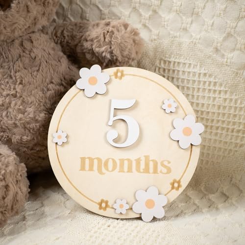 HONOCOOLS - بطاقات مميزة شهرية للأطفال، بطاقات خشبية شهرية، دعائم تصوير لحديثي الولادة لتوثيق نمو طفلك، لافتة إعلان للأطفال البيبي (B06)