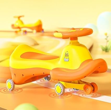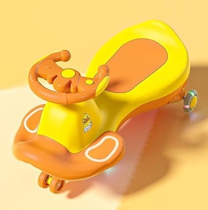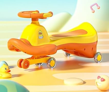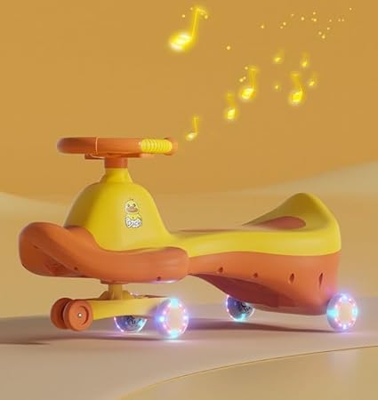 Generic - سيارة أطفال موسيقية مضيئة، مقعد دوار، عجلات نور، لون برتقالي