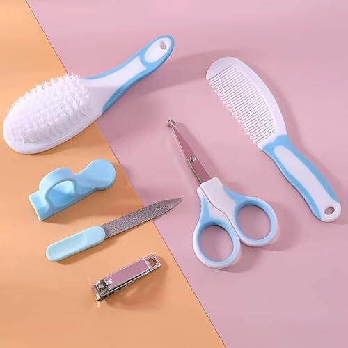 Generic - طقم عناية بأظافر الأطفال - يحتوي على قصافة أظافر، غطاء واقٍ، مبرد، قصافة القشور، فرشاة شعر، ومشط - تصميم موحد بـ 6 قطع للعناية الآمنة