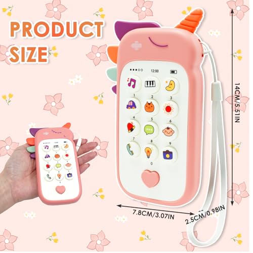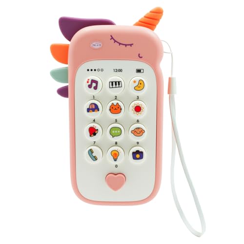 LLFYXM - لعبة موبايل تعليمية موسيقية تفاعلية للأطفال بعمر سنة واحدة للأولاد والبنات مع أرقام وأصوات حيوانات ومركبات ومستوى صوت قابل للتعديل وعضاضة قابلة للفصل للأطفال من عمر 6 إلى 18 شهر (لون وردي)