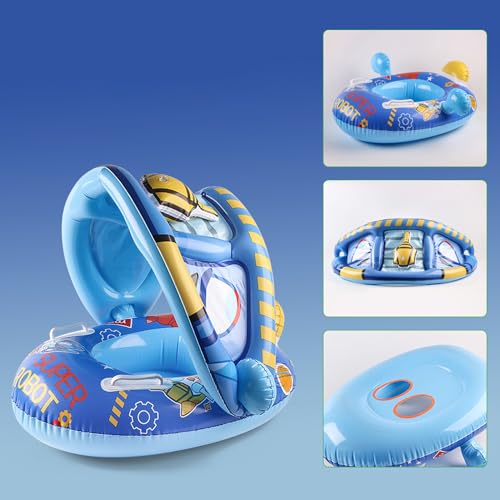 oydas - عوامة أطفال رضع، قارب عوامة سباحة مع مظلة للحماية من الشمس لحوض السباحة، عوامة تدريب على السباحة قابلة للنفخ على شكل يخت مزود بحلقة ومظلة للأولاد والبنات للصيف