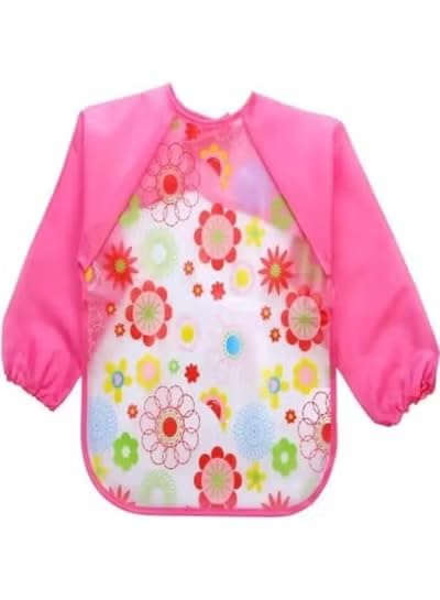 Generic - مريلة أطفال طويلة الأكمام مقاومة للماء للأكل والرسم (وردي)، مقاس واحد