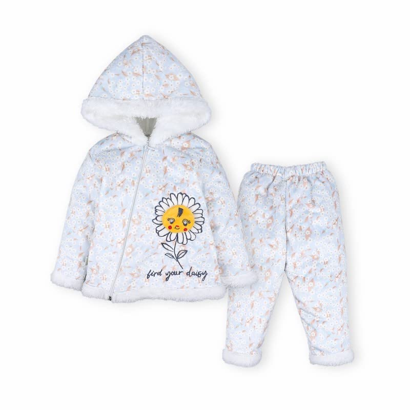 Generic - طقم شتوي للاطفال من خامة قطيفة مبطنة بالفرو - مكون من قطعتين ( مقاس 1- ازرق سماوي)