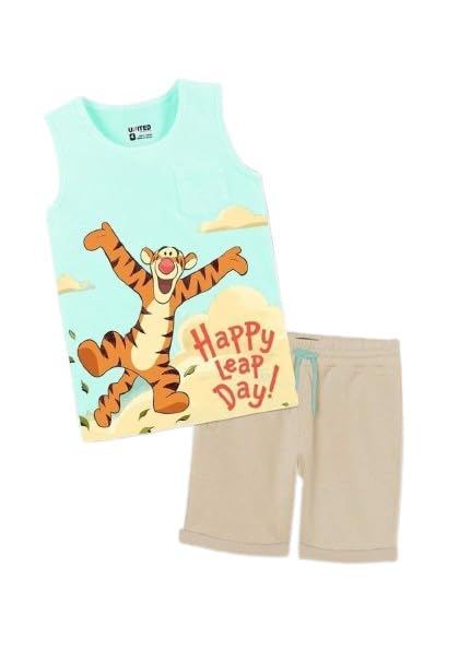 Generic - طقم اطفالي من قطعتيين تيشرت كت اخضر فاتح وشورت بيج