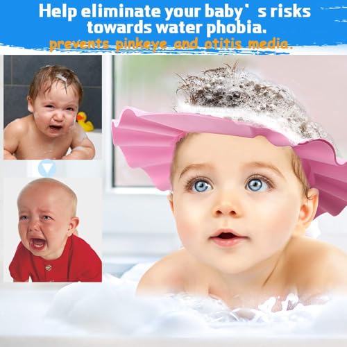 GHAZAL - قبعة حماية للعين من الشامبو عند غسل الشعر للأطفال بتصميم أمن وقابل للتعديل (لون وردي)