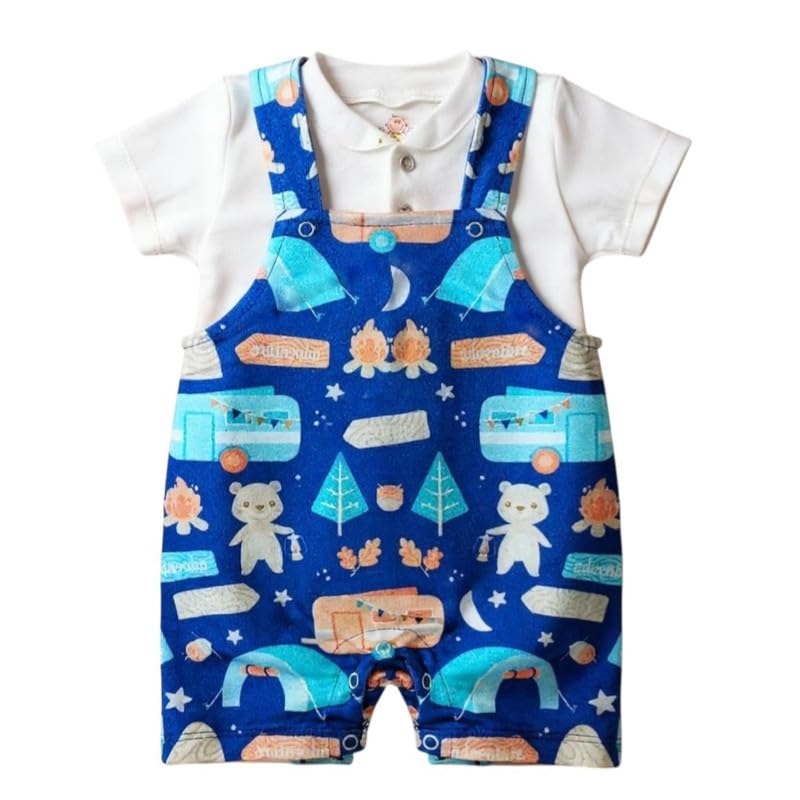 Baby Shoora - سالوبيت بكباسين نصف كم بدون اكمام للاولاد مطبوع باشكال نصف كم وسالوبيت بكباسين بدون اكمام (عبوة من قطعة واحدة)