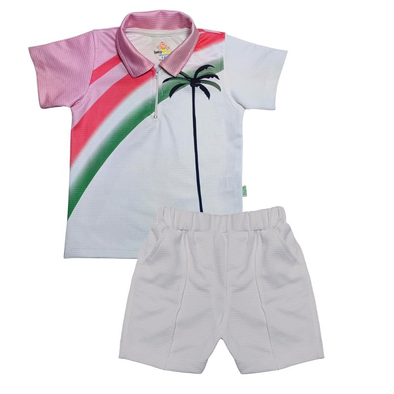 Baby Shoora - تيشرت نصف كم وشورت مطبوع عليه شجرة نخيل وشورت للاولاد (عبوة من قطعة واحدة)