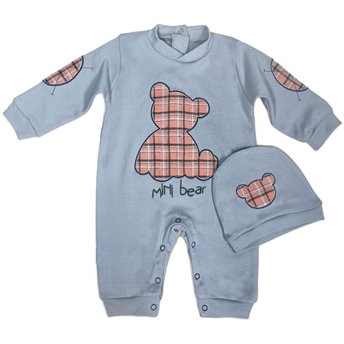 Baby Shoora - سالوبيت بكباسين بأكمام طويلة مع طاقية مطرزة برسمة دب للأطفال الرضع الصغار من بيبي شورا