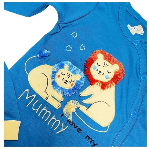 Baby Shoora - سالوبيت بكباسين بأكمام طويلة مع طاقية مطرزة بعبارة I Love Mummy للرضع والأطفال الصغار من بيبي شورا