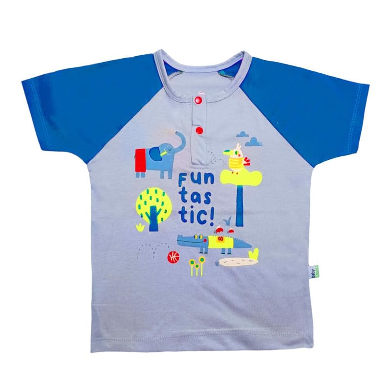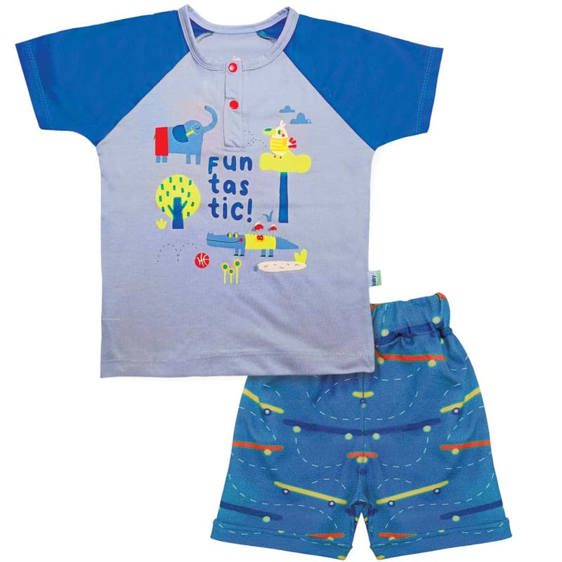 Baby Shoora - بيجامة للاولاد نصف كم وشورت مطبوع عليها حيوانات واكمام طويلة (عبوة من قطعة واحدة)