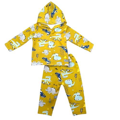 Baby Shoora - طقم بيجامة للأولاد من قطعتين مكون من سويت شيرت بغطاء للرأس وأكمام طويلة وبنطلون مطبوع عليه حيوانات من بيبي شورا (طقم من قطعتين)