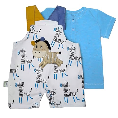 Baby Shoora - طقم سالوبيت بكباسين بدون أكمام ونصف كم بتطريز حيوانات للأولاد مكون من قطعتين من بيبي شورا