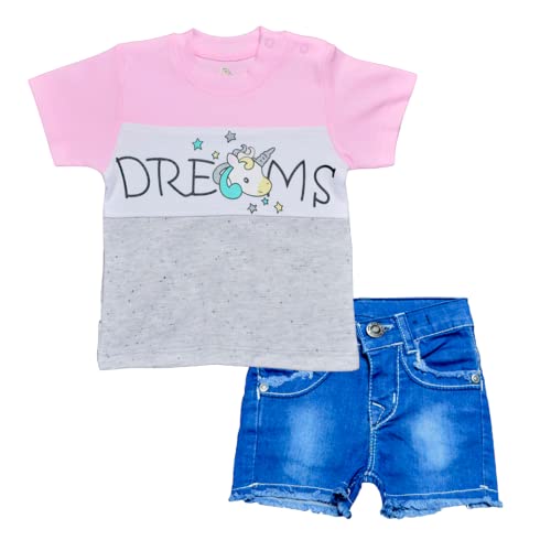 Baby Shoora - تيشرت نصف كم وشورت بطبعة حصان للبنات من بيبي شورا، قطعتين متعددة الألوان، لعمر 3 إلى 6 شهور