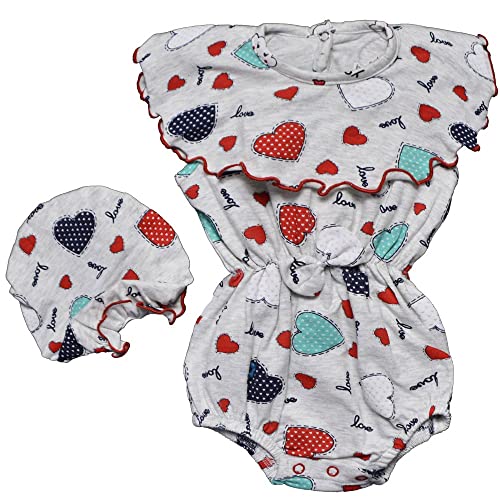 Baby Shoora - سالوبيت بكباسين من القطن بدون أكمام مع طاقية بطبعة قلوب للبنات من بيبي شورا، رمادي، 6 إلى 12 شهرًا