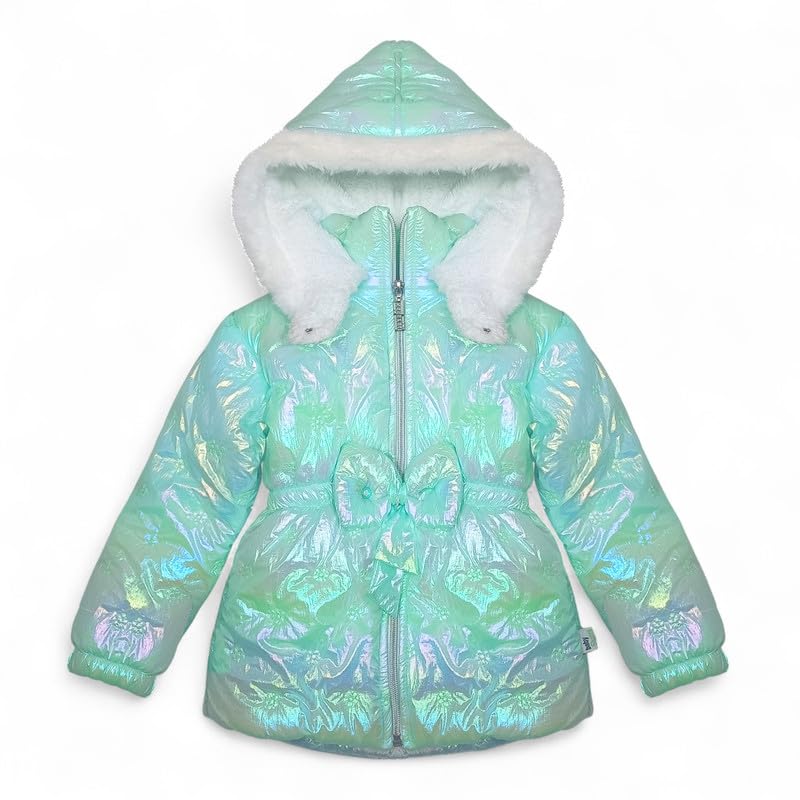 Baby Shoora - جاكيت مبطن بتصميم هولوجرافي مع حزام مزين بفيونكة للبنات من بيبي شورا - فوشيا