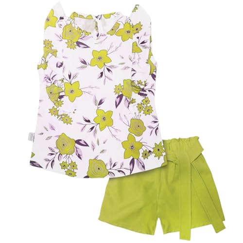 Baby Shoora - طقم ملابس بناتي من القطن مكون من قطعتين عبارة عن تيشيرت بدون أكمام بتصميم مطبوع عليه زهور وشورت من بيبي شورا (عبوة من قطعة واحدة)