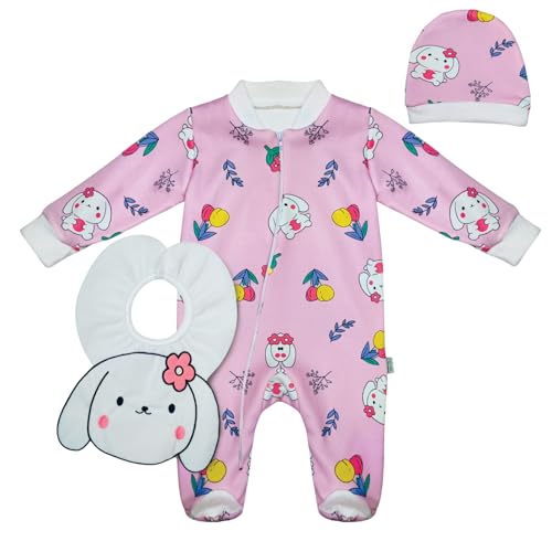 Baby Shoora - سالوبيت بكباسين بأكمام طويلة مع قبعة وبافتة بأشكال مطبوعة وأكمام طويلة للبنات من بيبي شورا (عبوة من قطعة واحدة)
