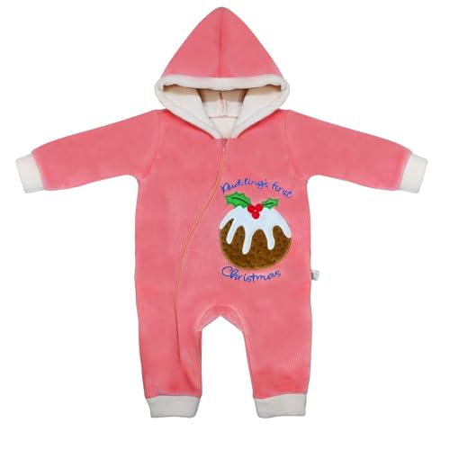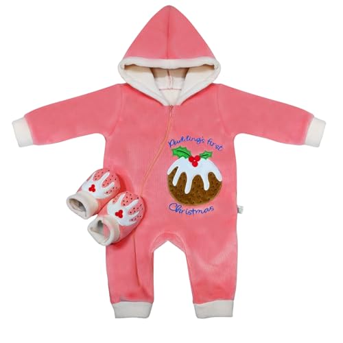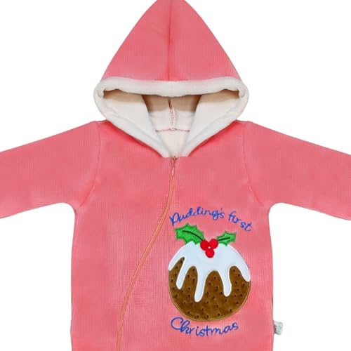 Baby Shoora - سالوبيت بكباسين باكمام طويلة وغطاء راس مطرز بنمط بودينج باكمام طويلة للبنات (عبوة من قطعة واحدة)