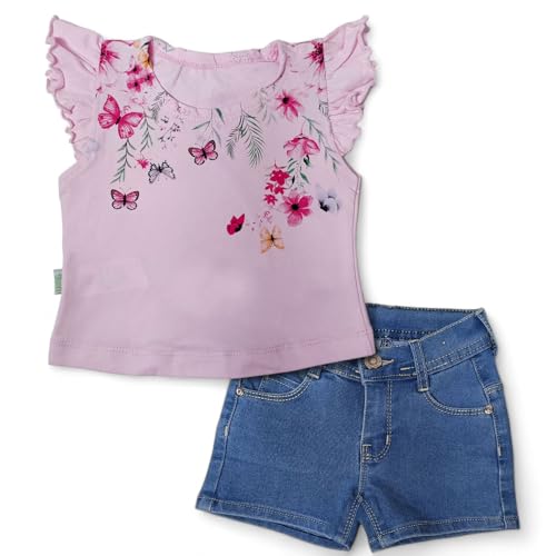 Baby Shoora - طقم قطعتين مكون من تيشرت نصف كم وشورت بطبعة فراشة للبنات من بيبي شورا