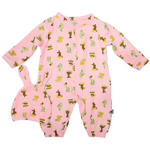 Baby Shoora - طقم مكون من قطعتين سالوبيت بكباسين باكمام طويلة وطاقية بطبعة اشكال للبنات (عبوة من قطعة واحدة)