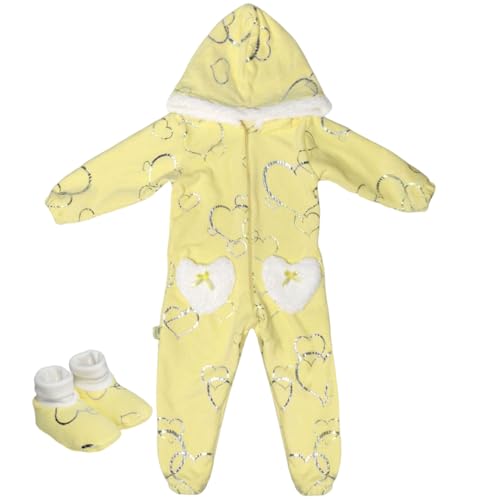 Baby Shoora - طقم سالوبيت بكباسين وغطاء للرأس وأكمام طويلة من بيبي شورا، مع شرابات بطبعة قلوب للرضع والأطفال الصغار، (عبوة من قطعتين)