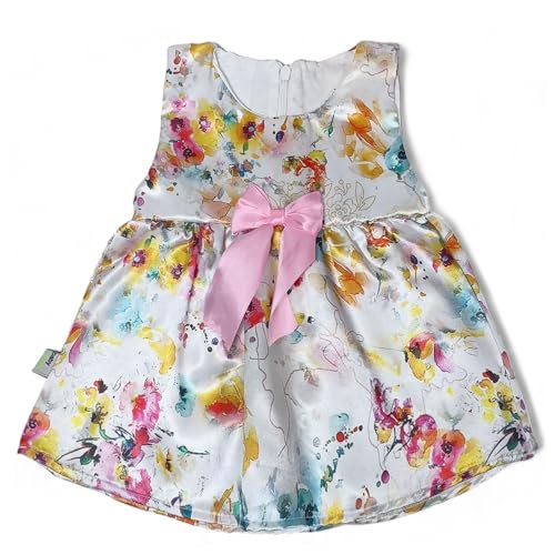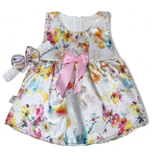 Baby Shoora - فستان ساتان بدون أكمام مع شريط رأس بطبعة أوراق شجر للبنات من بيبي شورا - متعدد الألوان - مقاس 6-12 شهر
