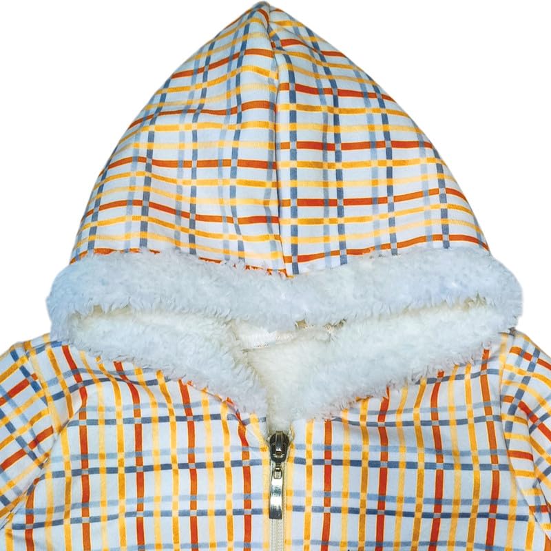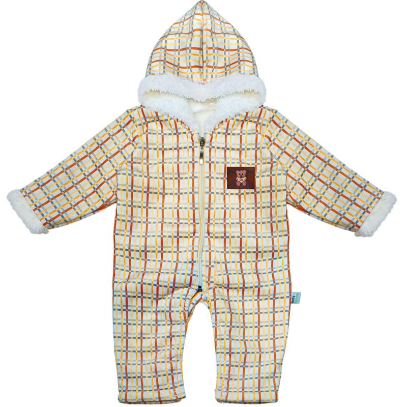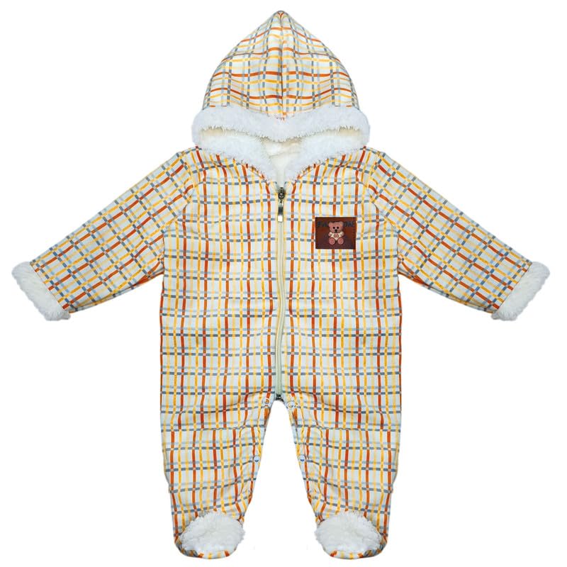 Baby Shoora - سالوبيت بغطاء رأس بنمط كاروهات مع رقعة بتصميم دبدوب من بيبي شورا، أصفر