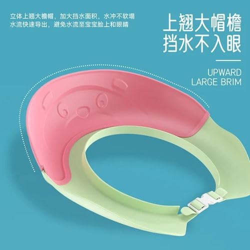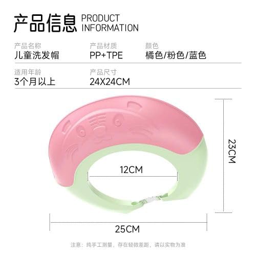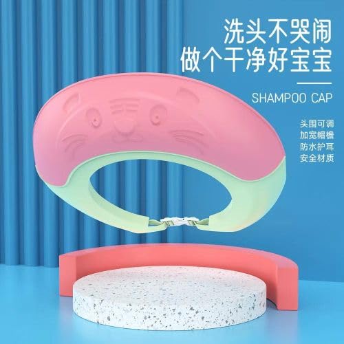 Generic - قبعة استحمام للأطفال، غطاء شامبو مقاوم للماء، قبعة واقية قابلة للتعديل، ٢٥ × ١٢ سم، وردي وأخضر