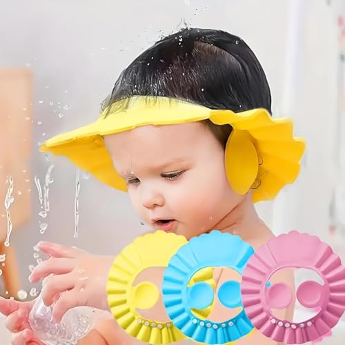 Generic - قبعة استحمام للأطفال مع غطاء حماية للأذن، قبعة ناعمة وقابلة للتعديل للرضع والأطفال الصغار للحفاظ على آذانهم آمنة أثناء الاستحمام (3 قبعة)