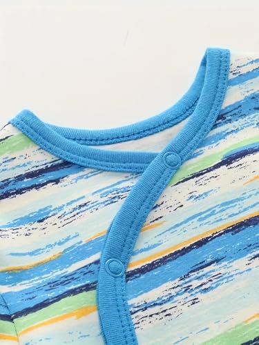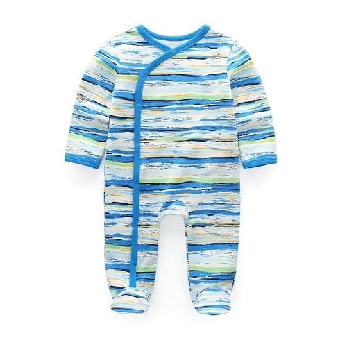 Generic - سالوبيت نوم للاطفال بعمر 6-9 شهور بنمط مخطط المحيط، رومبر باكمام طويلة، ازرق وابيض
