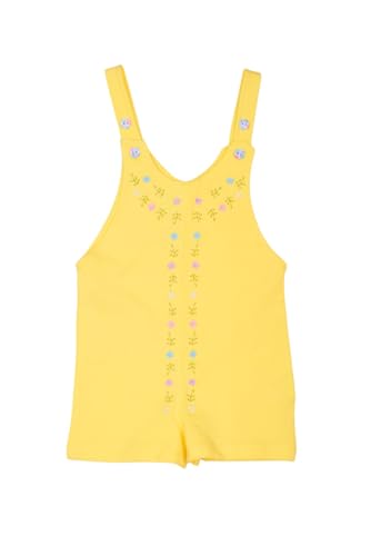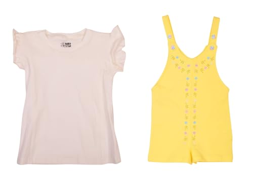 Baby Star B.S kids - سالوبيت صيفي من القطن الناعم مزين بالزهور للبنات البيبي من بيبي ستار، قطعتان، أصفر ورمادي