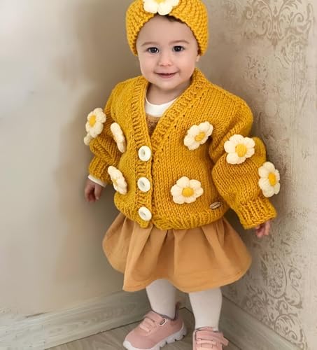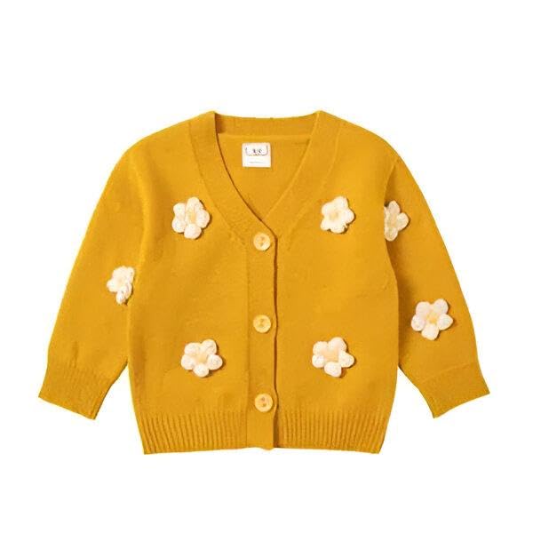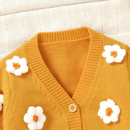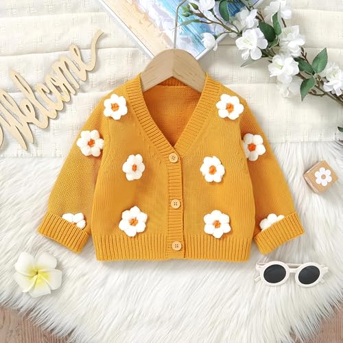 Generic - كارديجان للفتيات الصغيرات - سويتر مريح باكمام طويلة مزين بالزهور للدفء والاناقة، مثالي للربيع والخريف، معاطف محبوكة لارتداء يومي مريح