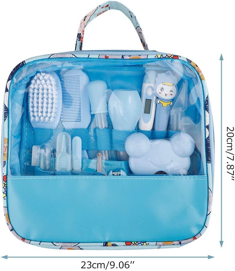 Generic - توك اطفال واكسسوار (مجموعة ادوات لحديثي الولادة 13 قطعة للمنزل والسفر مع شنطة ازرق)