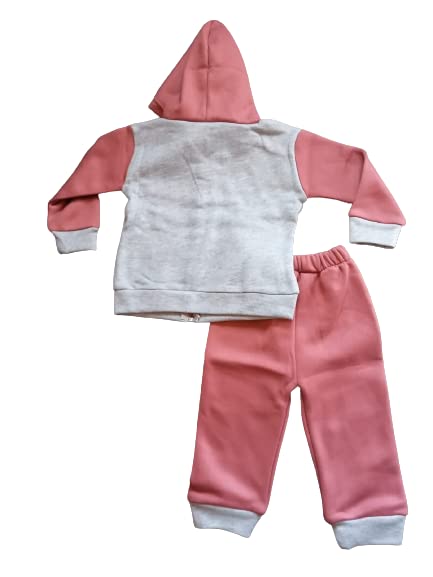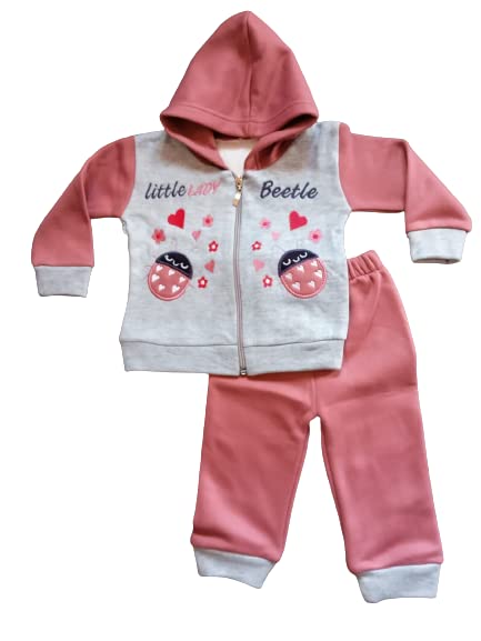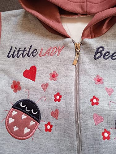 Generic - بيجامة أطفال بيبي شتوي قطن - مطرز - بناتي - به غطاء رأس – لون رصاصي (0-6 شهور)