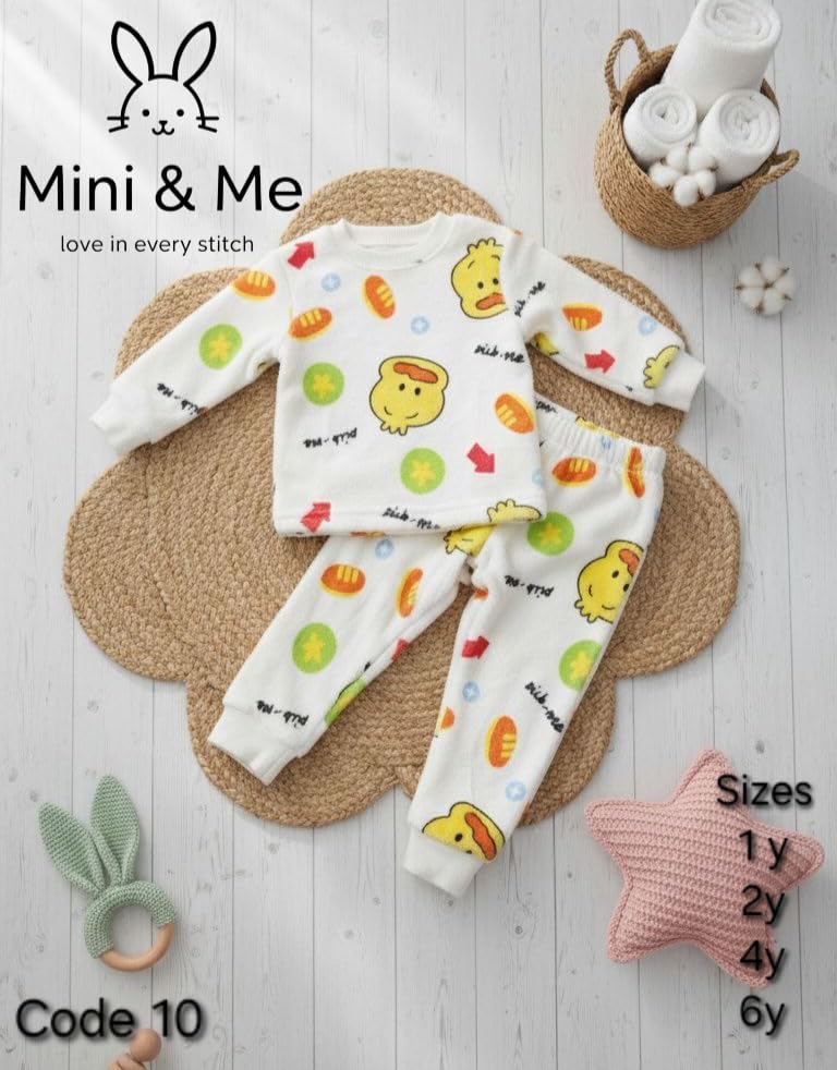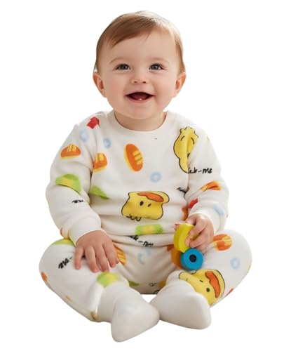Generic - طقم بيجامة شتوية للاطفال البيبي، ابيض مع طباعة طعام ملونة، اكمام طويلة، قطن ناعم، لعمر 4 سنوات
