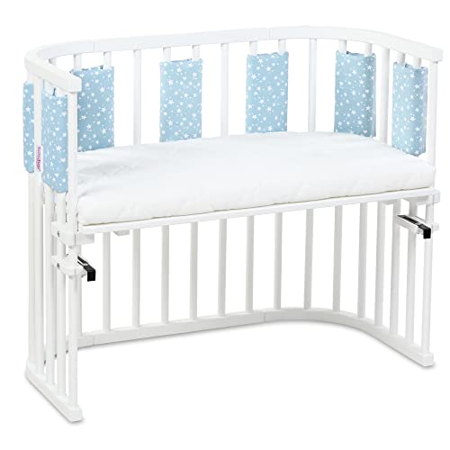 babybay - مخدات بيبي نيست لسرير الأطفال من قماش بيكيه فائق النعومة والانتعاش من بيبي باي، لون أزرق سماوي (Azure) مع نجوم بيضاء