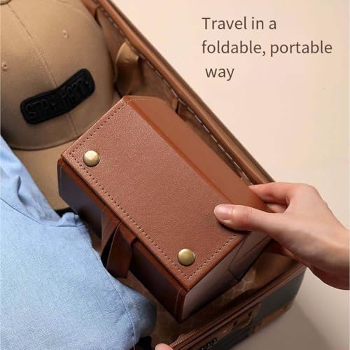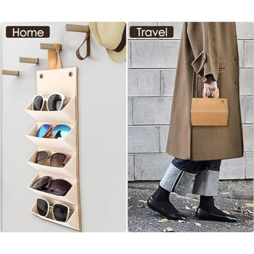 Babygleam - منظم نظارات شمسية من بيبي جليم، مصنوع الجلد الصناعي مع 5 فتحات لتخزين النظارات الشمسية للسفر، شنطة محمولة قابلة للطي لحمل الطبية حريمية ورجالية (بني)